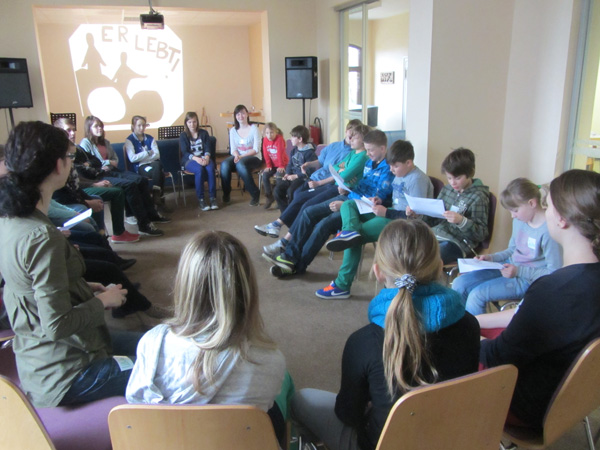 Vom letzen Abendmahl mit Jesus bis zur Auferstehung wurden während der Themenzeit mit Hilfe von Silhouettenschnitten die Kernereignisse von Passion und Ostern zusammengefasst. Nach Rätsel kamen Kartenspiel und Gummihuhn für zwei Stuhlkreisspiele zum Einsatz. Gemeinsames Mittagessen stärkte alle für die Workshopzeit, die echt schöne Ergebnisse produzierte.