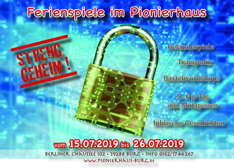 Unter dem Motto „Streng geheim!“ laufen vom 15.-26.2019 zum 15. Mal in Folge die Ferienspiele im Burger Pionierhaus in der Trägerschaft des VdA e.V.