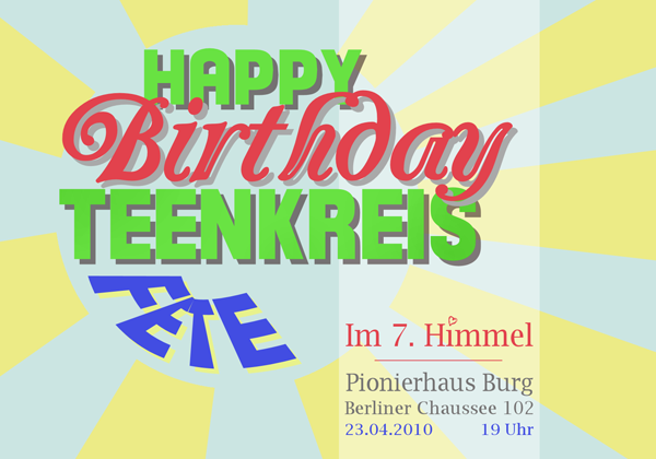 Die Teens gestalten am Karfreitag mit anderen Gemeinden der Stadt den ökumenischen Jugendkreuzweg und treffen sich am 9. April wie gewohnt ab 19.00 Uhr im PHB in der Berliner Chaussee 102.